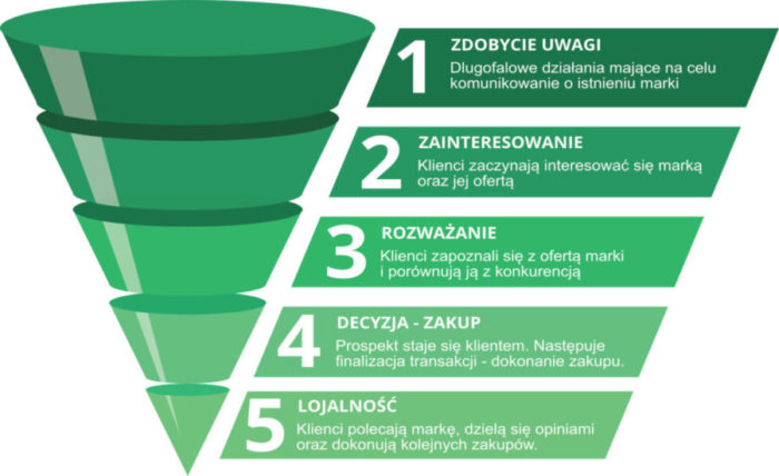 Zarówno customer journey, jak i lejki sprzedażowe są narzędziami, które umożliwiają praktyczne przedstawienie indywidualnych etapów zmiany grupy docelowej w klientów. Lejek sprzedażowy wyznacza najkrótszą ścieżkę, jaką może przejść klient od świadomości marki do zakupu. W praktyce jednak droga, jaką musi pokonać odbiorca aby stać się klientem nie jest prosta.