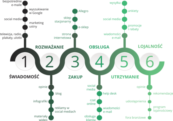 Kolejnym krokiem jest wyznaczenie punktów styku (touchpointów) na mapie podróży klienta. Są to wszystkie miejsca związane z marką, w których może pojawić się klient. Do typowych touchpointów należą np.: