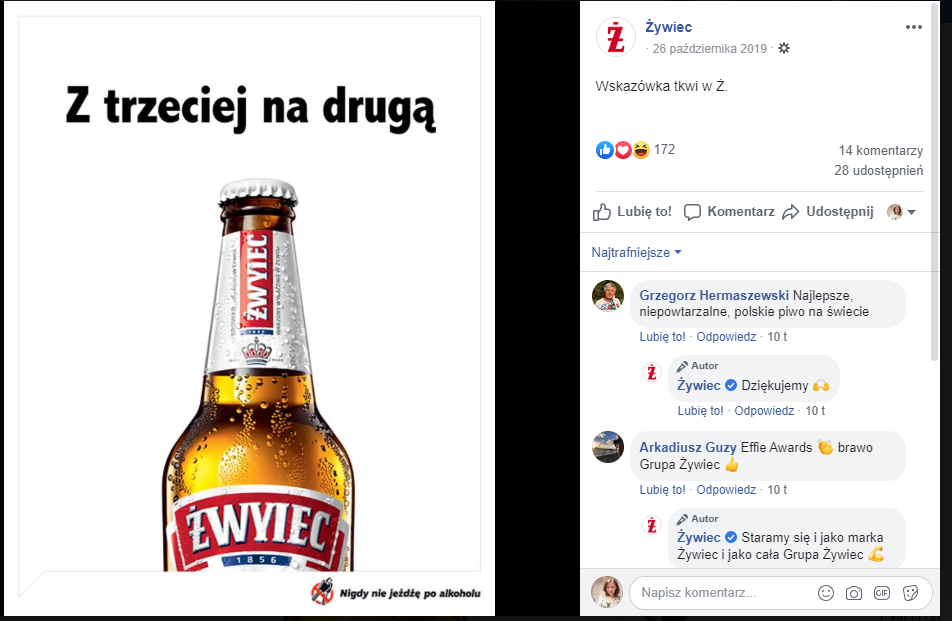 3. Piwo Żywiec. Nominacja za dobre hasła, szybkie reakcje oraz wcześniej zaplanowane działania RTM.