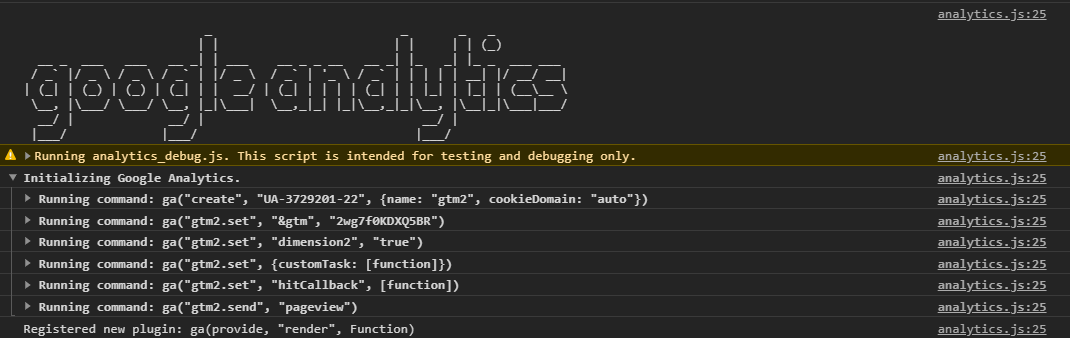 Google Analytics Debugger [dla przeglądarki Chrome], która uruchamia tryb debugowania w naszym kodzie śledzącym