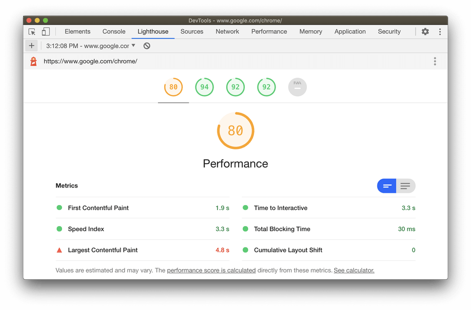 1. Użyj Lighthouse w DevTools, aby zoptymalizować doświadczenie użytkownika i upewnić się, że jesteś odpowiednio przygotowany do optymalizacji Core Web Vitals.