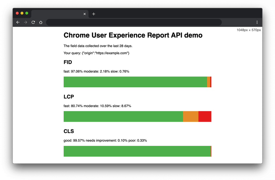 3. Wypróbuj nowy interfejs Chrome User Experience Report API aby sprawdzić, jak Twoja witryna i poszczególne adresy URL radziły sobie z Core Web Vitals w ciągu ostatnich 28 dni.