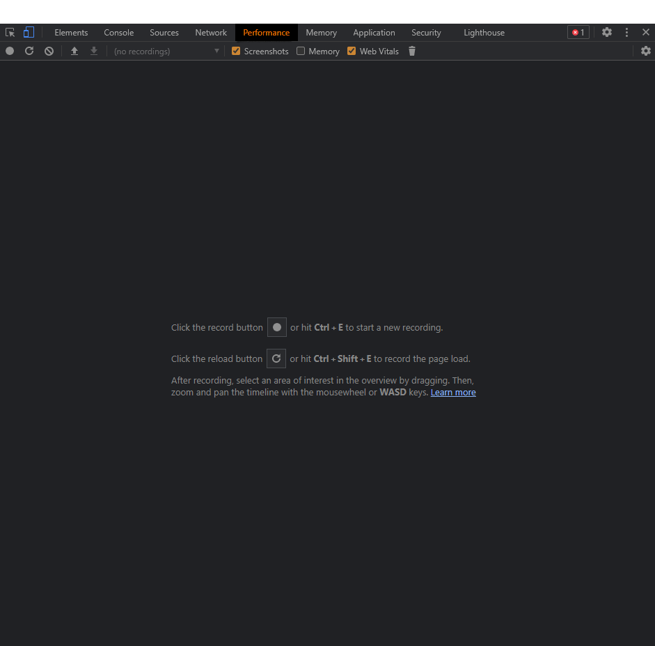 4. Skorzystaj z sekcji Performance w panelu Wydajność DevTools, aby dokładnie przeanalizować i „zdebugować” występującą liczbę błędów i nieprawidłowości w zakresie określonych metryk.