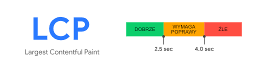 To wskaźnik, który mierzy czas ładowania największego pliku graficznego lub bloku tekstu widocznego w tzw. viewporcie, czyli podglądzie strony[2]. Google wskazuje, że czas ładowania LCP nie powinien przekroczyć 2,5 sekundy. Akceptowalny jest też czas między 2,5 a 4 sekundy, jednak Google sugeruje, że Twoją rolą, jako właściciela witryny, jest poprawienie tego czasu. Wyszukiwarka, dokonując analizy, bierze pod uwagę wszystkie elementy (także te wewnątrz ) oraz